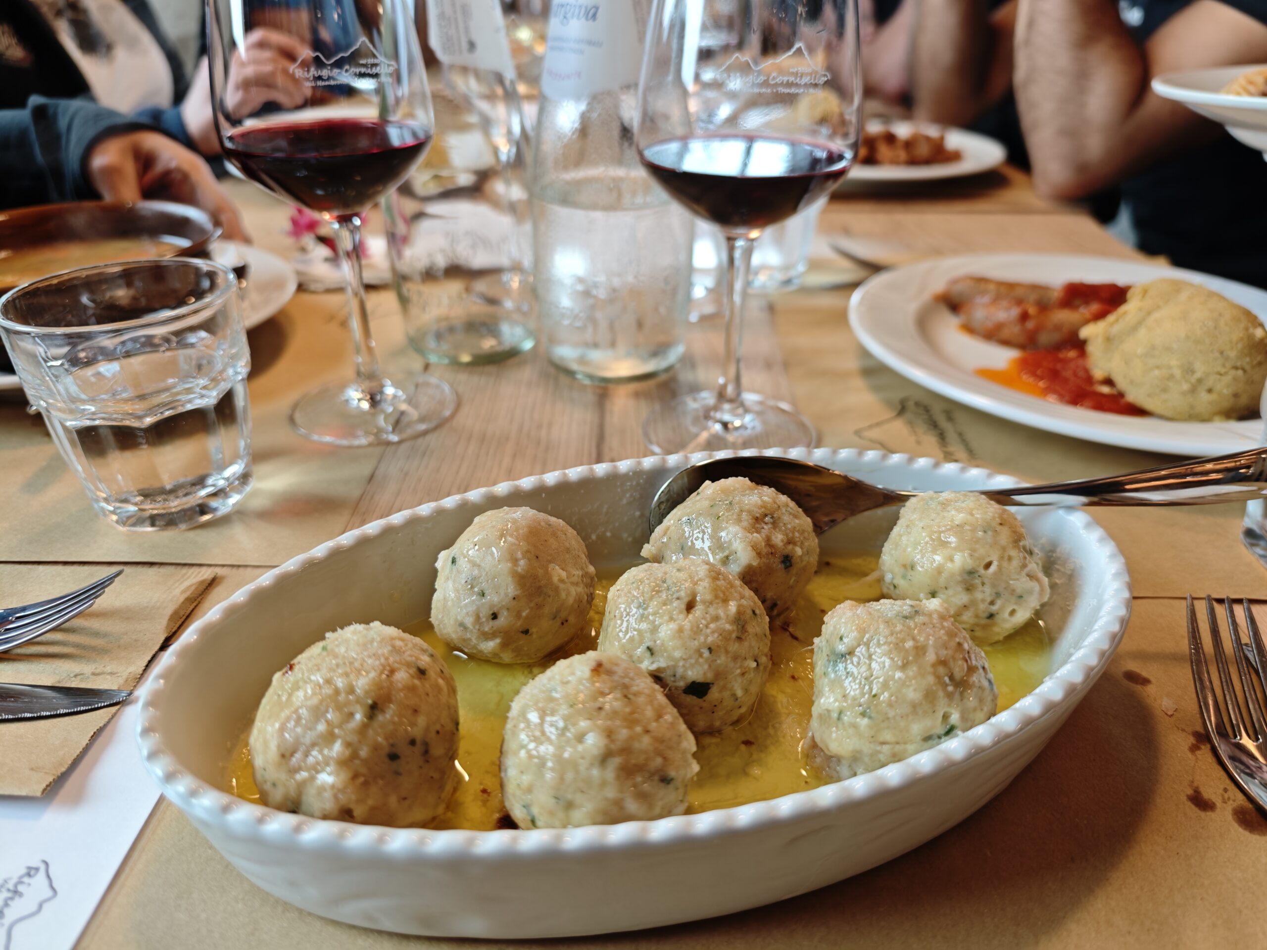 Em oficinas locais, é possível aprender a arte do canederli — os tradicionais bolinhos de pão e especiarias, geralmente temperados com manteiga e queijo, que alimentam gerações de montanheses.